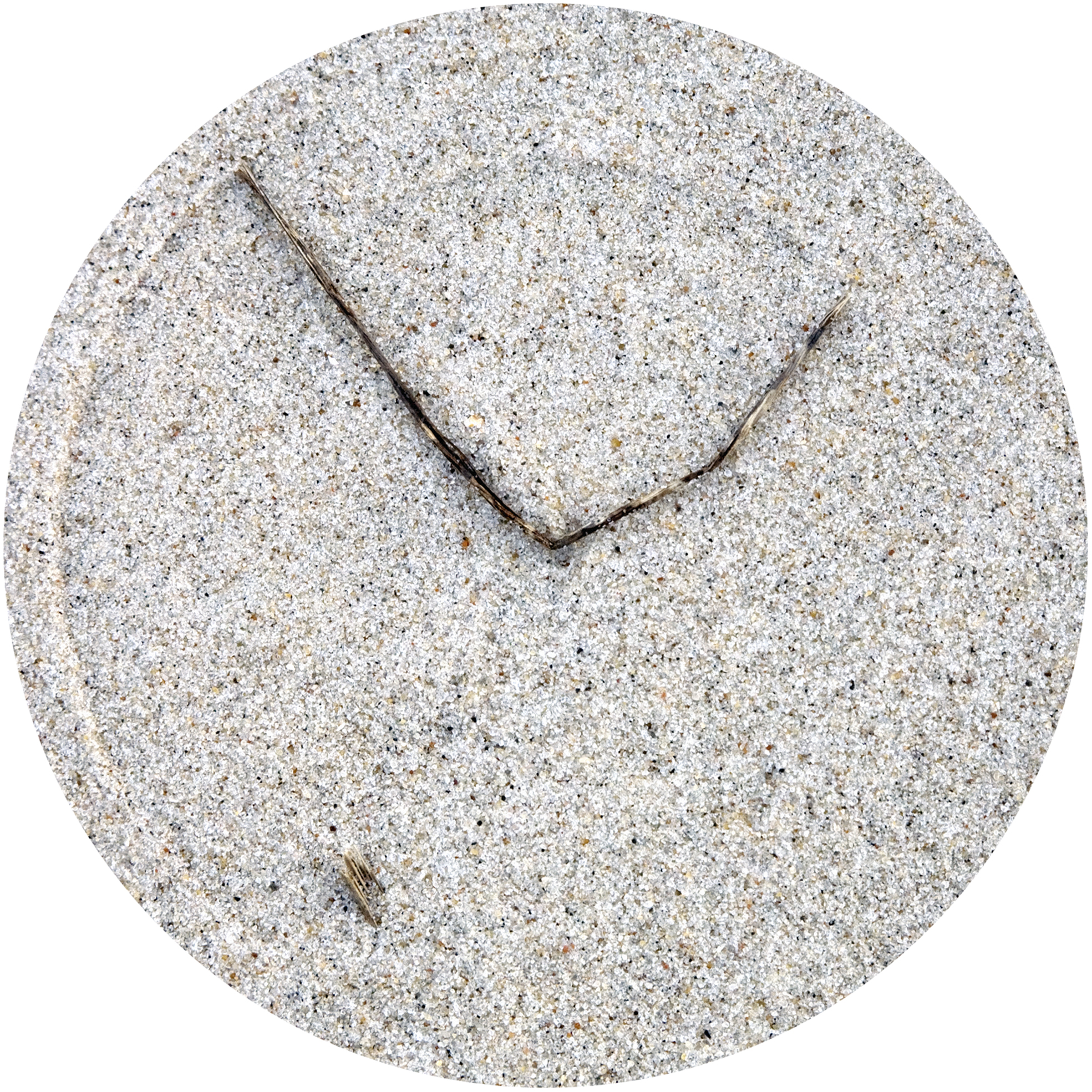 The collision between nature and artifice is fully disclosed in Time is smiling at you, where the circular prints that we read as clocks are in fact images of a pattern created by the wind moving a snapped twig on the sand. This very simple “empirical appropriation” by Bengtsson mirrors how the notion of time is created; that is, by reducing an organic entity with qualitative features into an abstract unit with quantitative characteristics.