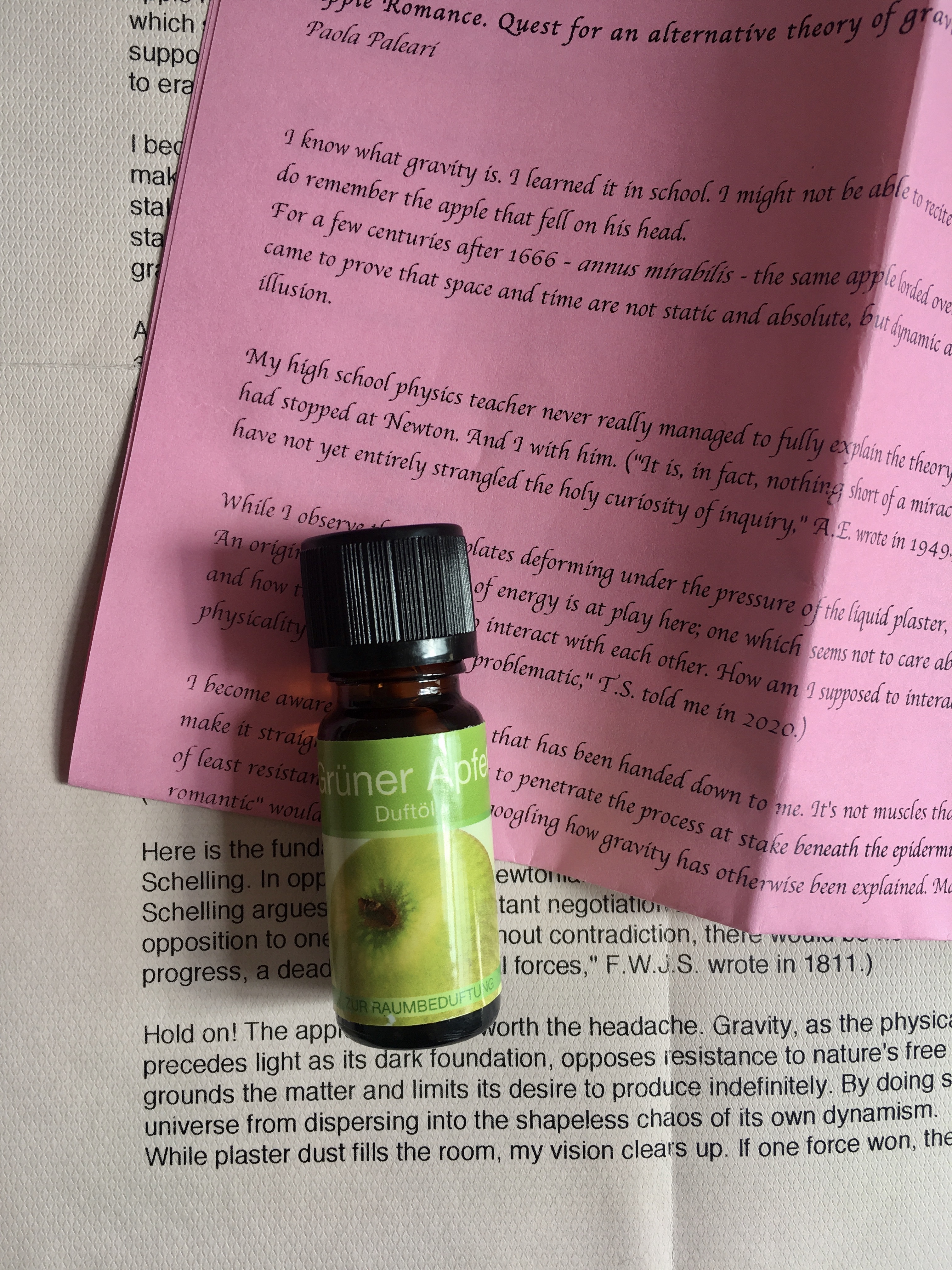 Apple Romance. Quest for an alternative theory of gravity was written in conjunction with Tove Storch’s solo exhibition at Nils Stærk in Copenhagen, August 26th – October 24th, 2020.
