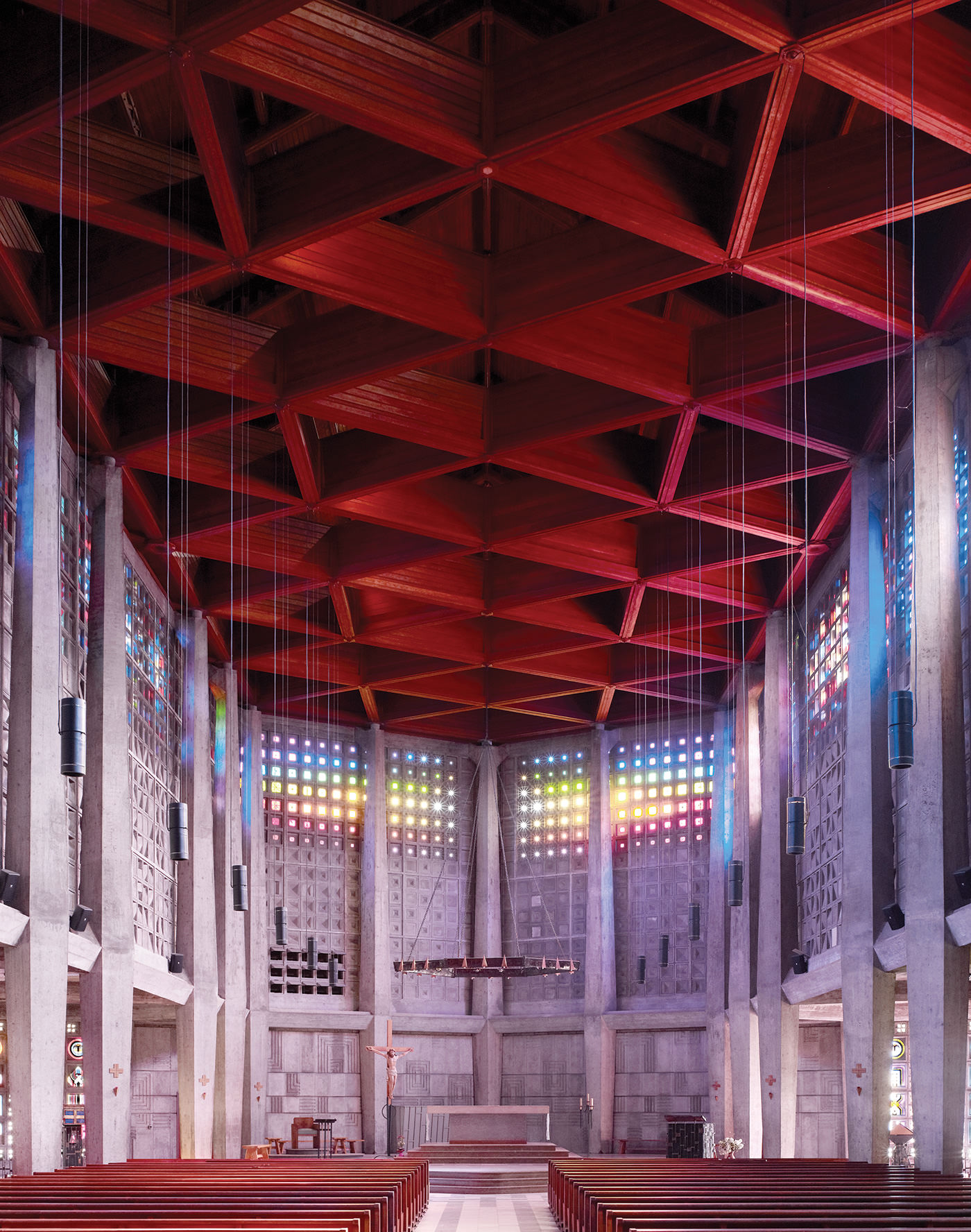The churches you depict in Corpus Christi are characterized by the fusion of their majestic verticality and strong solemnity with the futuristic use of structures and materials – a combination that you decided to transmit by adopting a rigorous system and a neutral point of view. What else can you tell us about this choice?