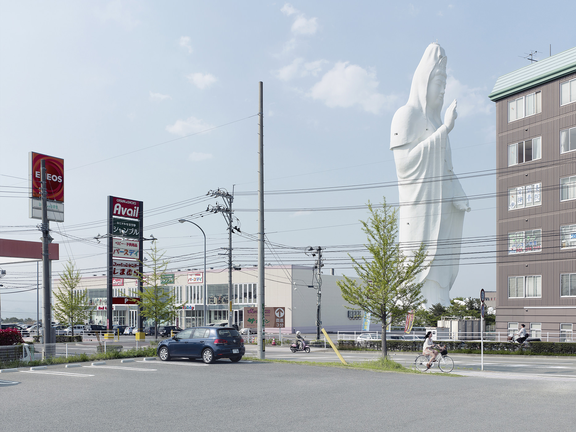 The question is addressed through photography by Fabrice Fouillet, who trolls the planet with his camera in order to document to what extent architecture can bear the symbols of a particular culture. One of his most well-known series, Corpus Christi, focuses on a very specific niche of the religious architecture (the modernist churches that were built mainly in Europe in the ’50s and ’60s), while his latest project, Colosses, is a worldwide study of the landscapes embracing monumental commemorative statues.