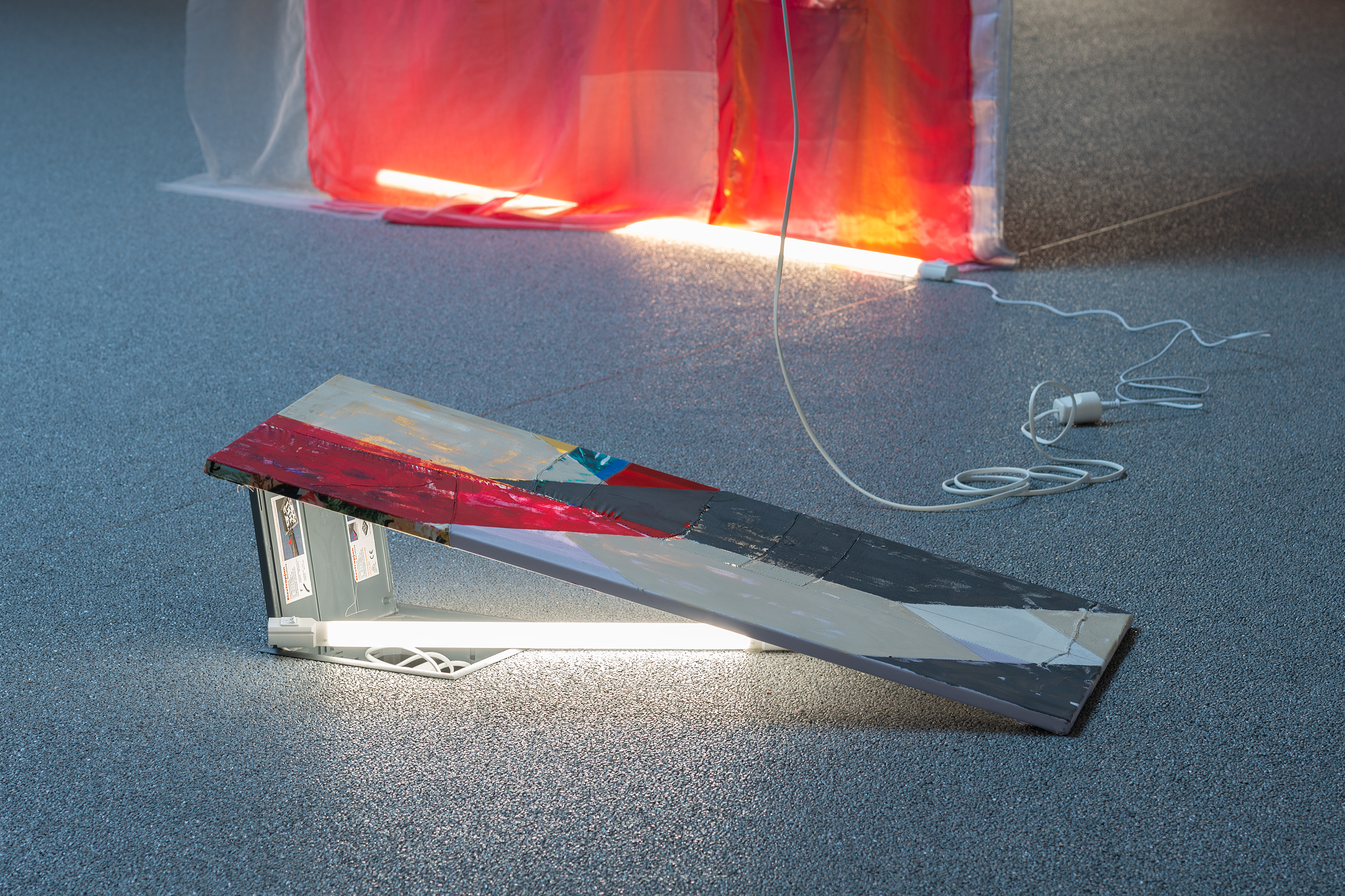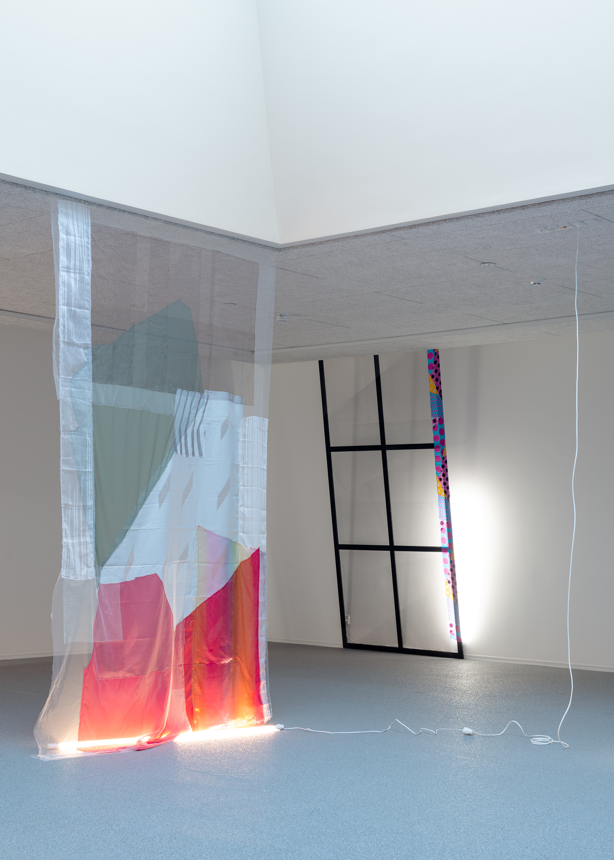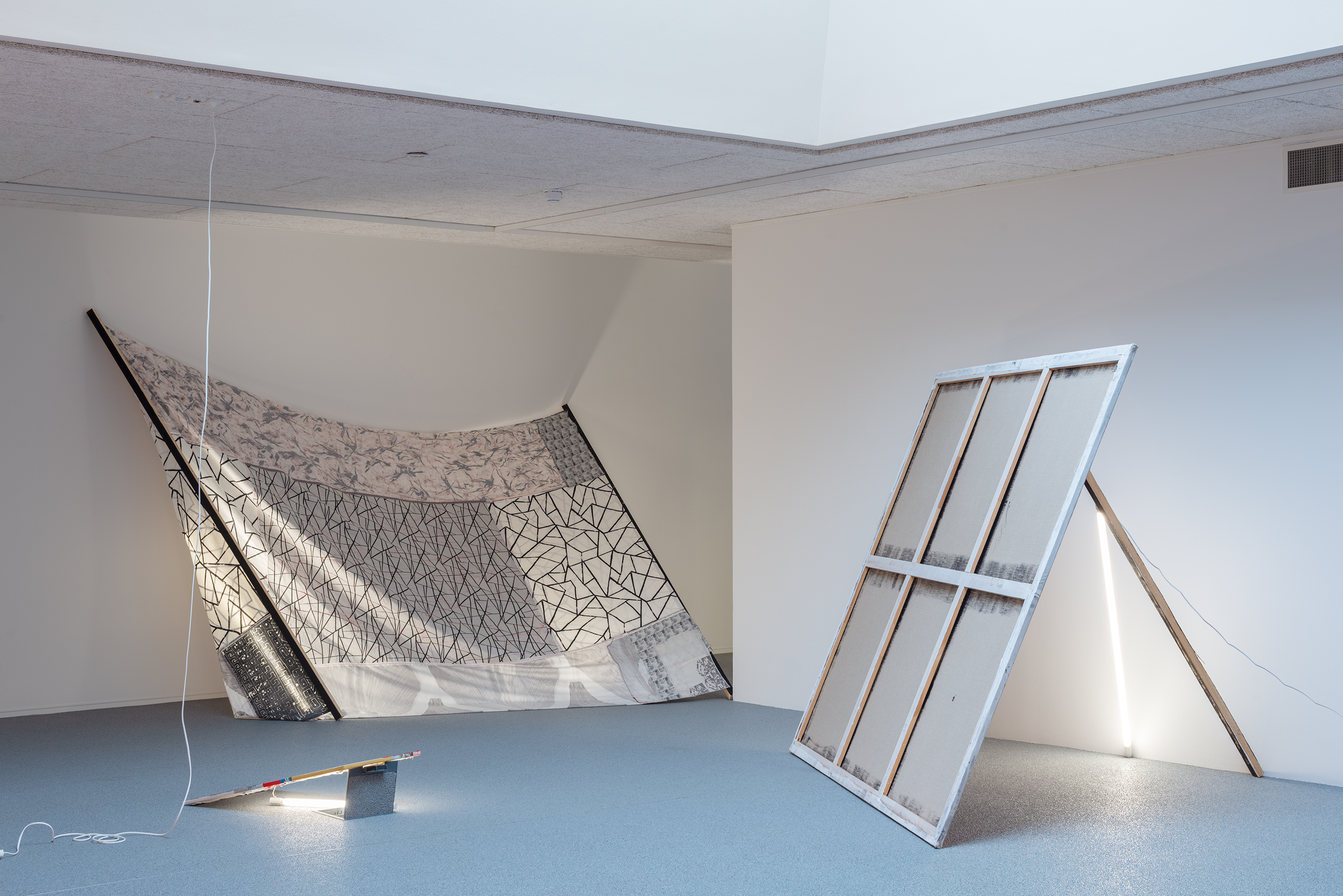With this as a starting point, Winckelmann revisits pre-existing materials in an attempt to free them from their assigned identity and disturb the scope they were originally allocated to. A variety of leftovers from previous productions – such as building materials from the renovation of Dannerhuset in 2011, and textile cut-outs from older works – form the inventory at play here.