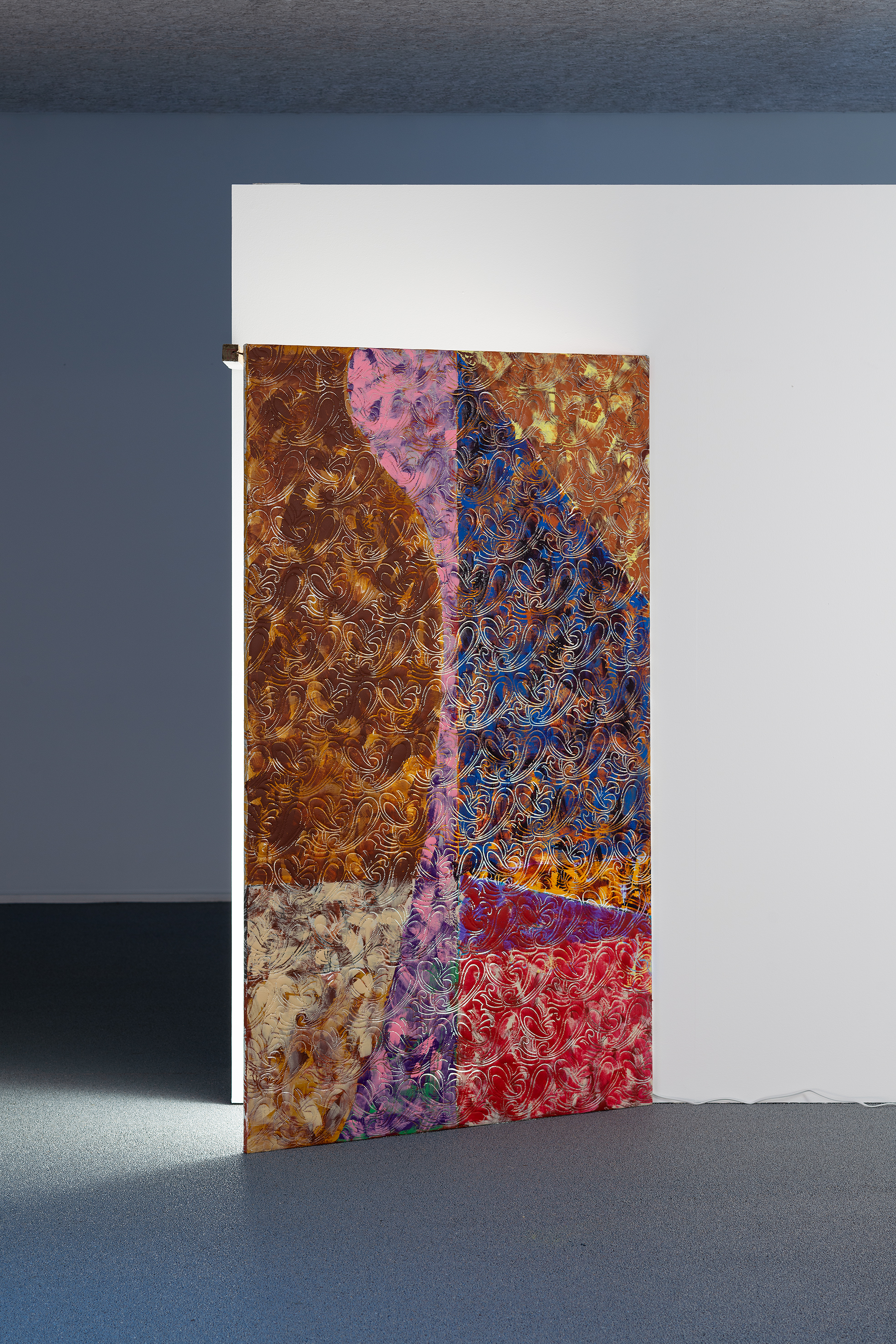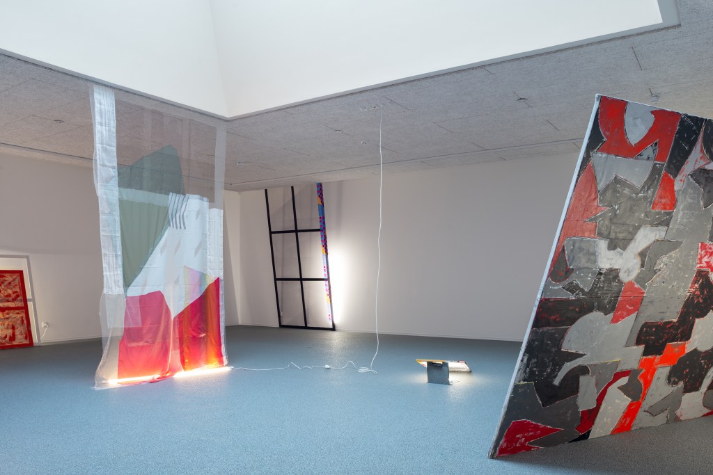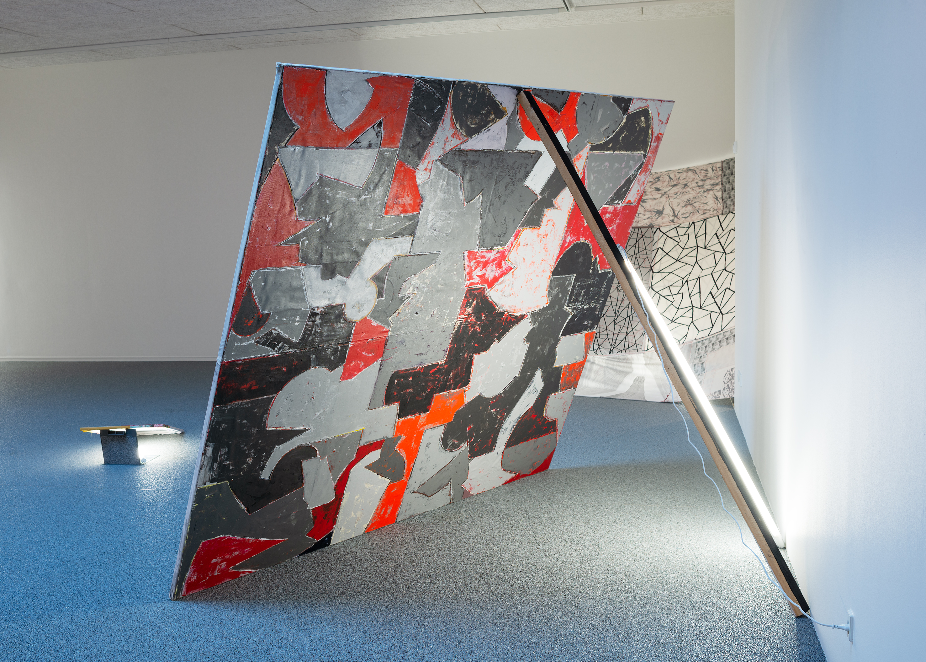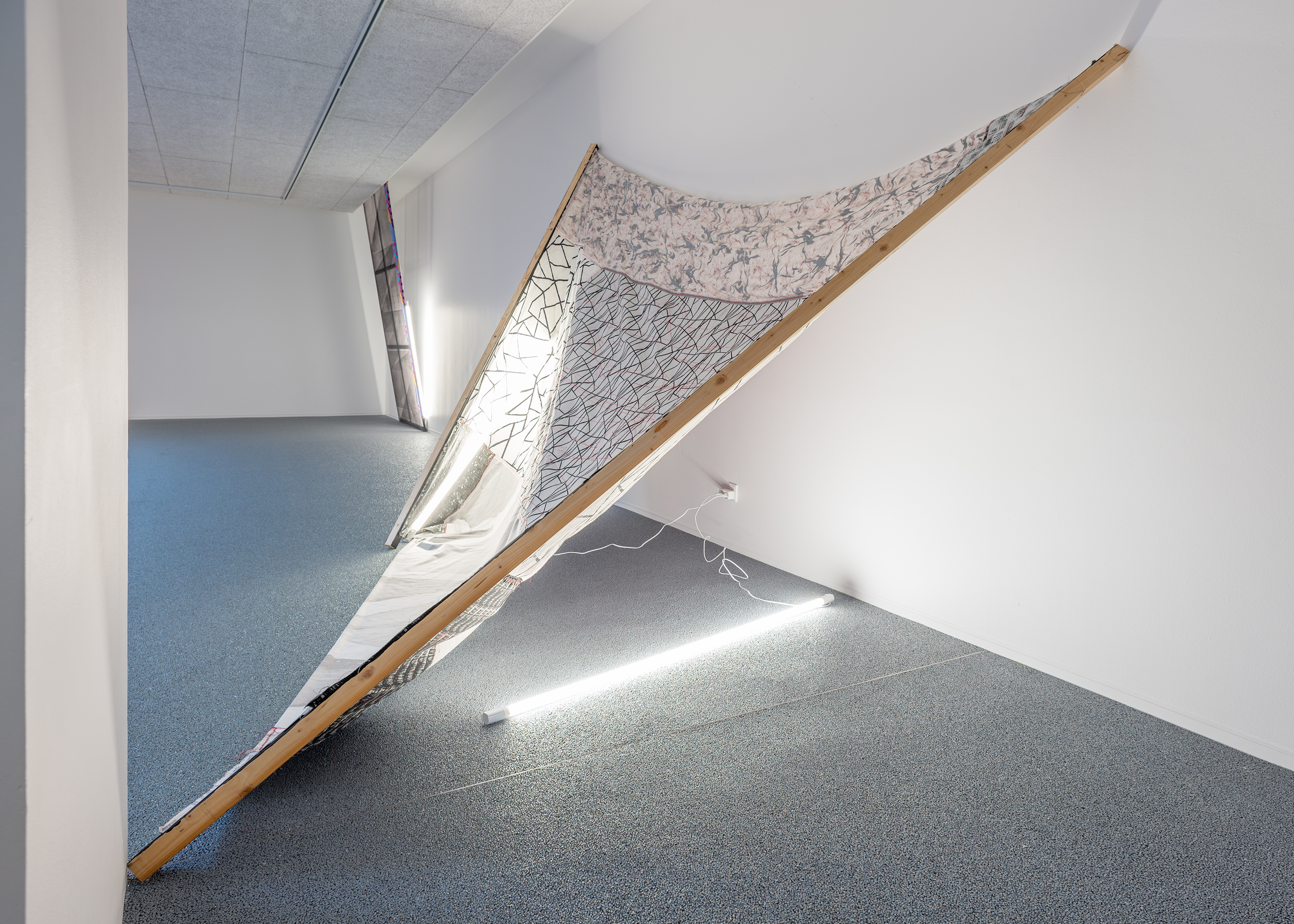With this as a starting point, Winckelmann revisits pre-existing materials in an attempt to free them from their assigned identity and disturb the scope they were originally allocated to. A variety of leftovers from previous productions – such as building materials from the renovation of Dannerhuset in 2011, and textile cut-outs from older works – form the inventory at play here.