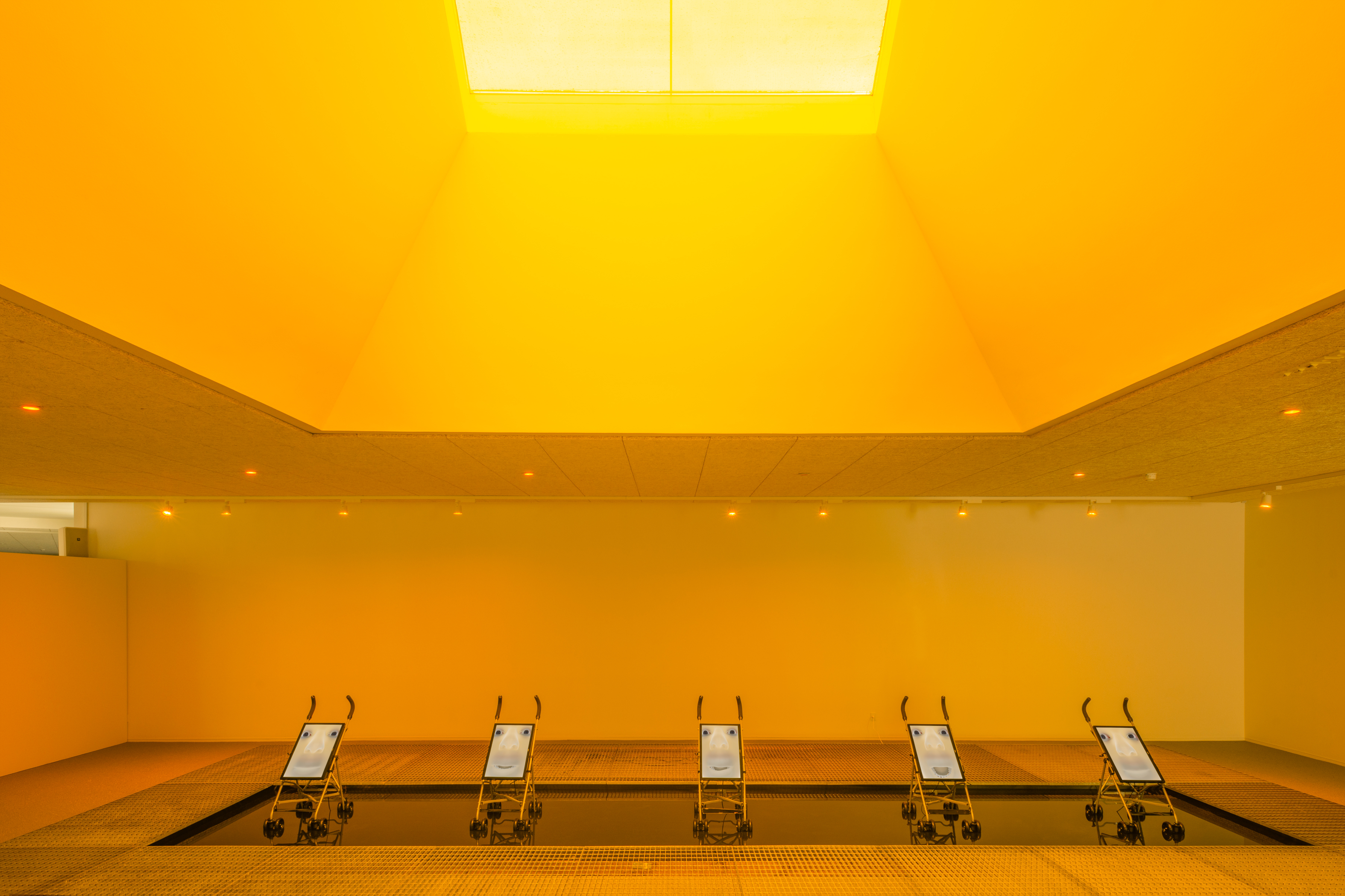 Dawn Chorus picks up on previous works by Stine Deja which explore the cryogenic freezing of human bodies after their clinical death, with the speculative hope that resurrection may one day become practicable. Presently, there are about 400 corpses on the frost, waiting for a technological breakthrough and thus the realization of man’s oldest dream: a second life after the last breath is exhaled. In the installation at Vestjyllands Kunstpavillon, the ice has thawed into a pool of water: the temperature has risen and the new day has already begun.